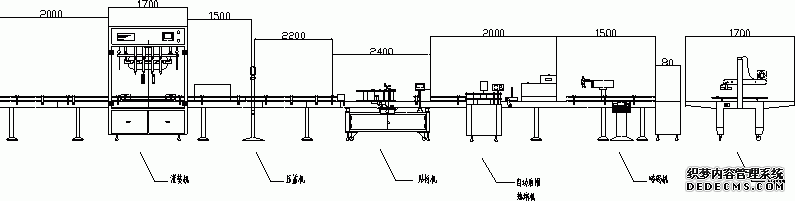 方案設計一:灌裝機+壓蓋機+貼標機+自動膠帽熱縮機+噴碼機+封箱機
